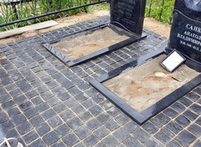 Первым делом мы подготовили участок к работам: демонтировали уже установленное надгробье, а также разровняли почву на могиле, тем самым подготовив её к укладке наземного покрытия.